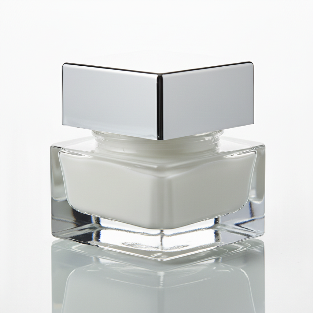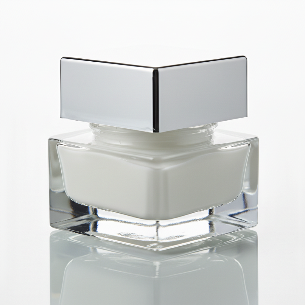 Elevate your product packaging with this premium square glass jar, featuring a distinctive heavy base for added stability and a luxurious feel. The crystal-clear glass construction ensures maximum visibility of contents, while the sleek silver screw-on cap provides a secure closure and a modern aesthetic. Ideal for high-end cosmetics, creams, balms, or gourmet samples, the square design optimizes shelf space and offers a sophisticated alternative to standard round containers.