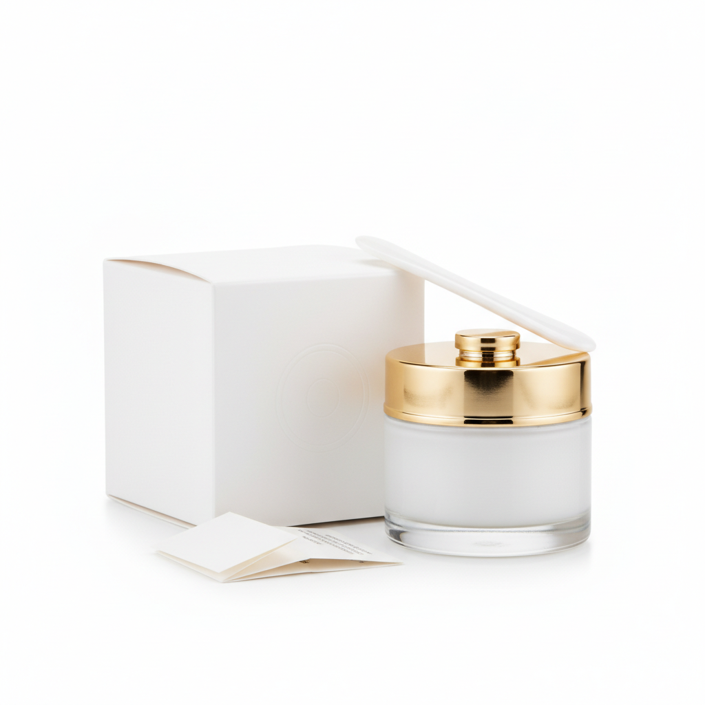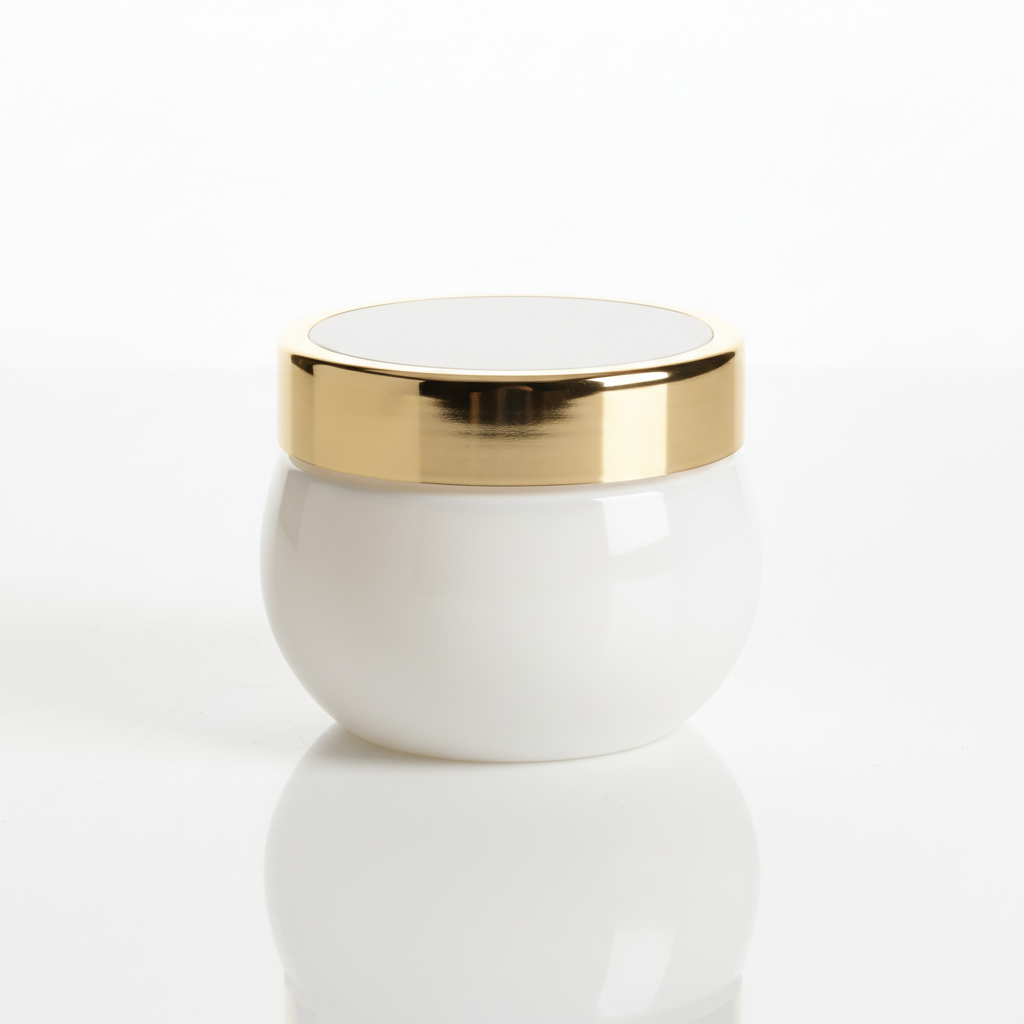 White Opal Glass Jar with Gold Trim Lid – Premium Skincare Packaging